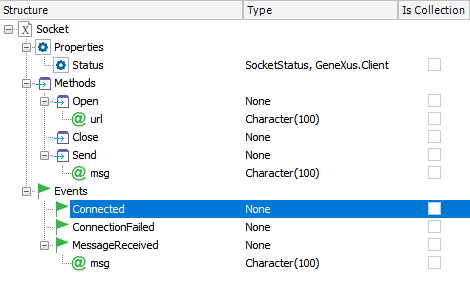 When using GeneXus to create your application and the server, GeneXus will automatically configure the Server connection via WebSocket, as well as manage the connections of client applications and disconnect from them. If the connection is lost or a problem arises, it will try to re-establish the connection. However, if the implementation requires it, the Open and Close methods will be used, which will allow establishing and closing connections with other WebSocket Servers not generated by GeneXus.